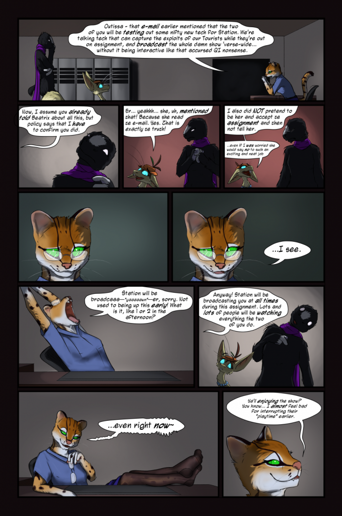 Hey, look! We finally get to see one of the mysterious voices from the first couple pages of the comic! Ms. Wilke here is an oncilla. Also, Beatrix… she talks a lot sometimes. If there’s not much else going on,[…]↓ Read the rest of this entry…