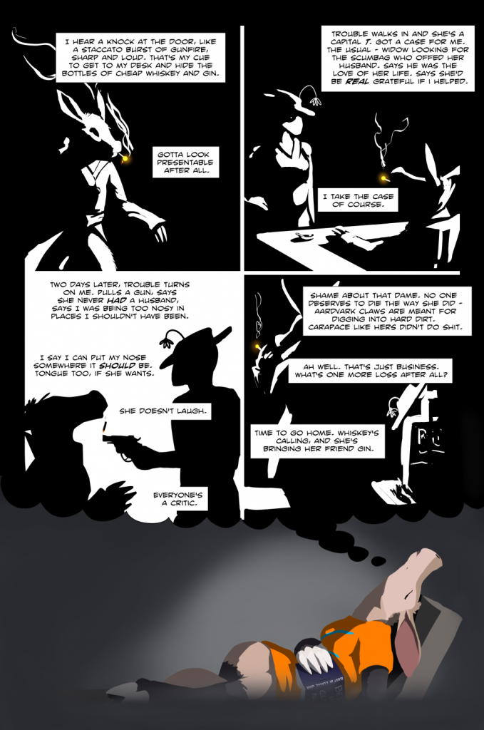 IT IS DONE OH YES AT LAST AHHHHHHHH Er. Uh. I mean, hey! Look, it’s the page! Please note that this just the first of two pages, with this little interlude story concluding with the next update. Neela is the[…]↓ Read the rest of this entry…