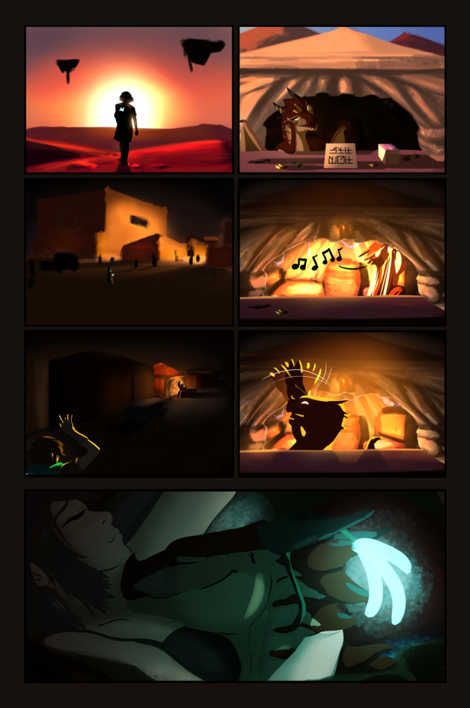 Priceless artifact in hand, Neela returns to the true treasure of her life, and the two enjoy another nice, long sleep together, Tika’s tent nice and warm against the chilly desert night. Tika drools in her sleep, but Neela doesn’t[…]↓ Read the rest of this entry…